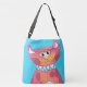 Sac à bandoulière à impression totale mignon fait dans un style de journal de dessin animé, avec un fond bleu ciel et un chat de dessin animé coloré comique. Personnalisez pour ajouter le texte que vous voulez. Amusement à transporter pour toutes les âges.
