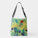 Ce sac d'art abstrait anime votre journée avec son interaction de jaune, bleu et vert agissant comme la lumière du soleil et l'eau sur un terrain vert.