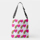 Fourre-tout vos affaires avec style avec un mignon sac de carrosserie ou d'épaule fourre-tout avec un motif répétitif de arc-en-ciel coloré émergeant des coeurs rose vif d'un côté et un seul coeur avec arc-en-ciel de l'autre côté. OEuvre originale de Vêtements et Collectables de Buttercup.