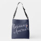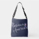 Bosniaque Américain Entwin Hearts Cross Body Bag. Que vous ayez une ascendance bosniaque, ou que vous veniez de Bosnie, ou peut-être que vous et votre moitié êtes bosniaque et américaine ! Il s'agit d'une police de caractères scénarisée, avec deux coeurs enchevêtrés avec des drapeaux des deux pays, et le texte : Bosniaque Américain