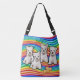 Sacs faits sur commande. Sac croisé de bodyTote de chiots d'arc-en-ciel grand. Les sacs fourre-tout, les sacs d'épaule croisés avec des chiots de Westie d'arc-en-ciel conçoivent.