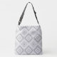 Mesdames grand sac fourre-tout croisé avec design moderne à motifs gris, arrière - plan blanc peut être changé à n'importe quelle couleur, et texte peut également être ajouté pour personnaliser.