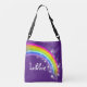 Les filles colorées pourpres d'arc-en-ciel impriment partout le sac. Personnalisez avec le nom court de votre choix et posséder la couleur d'arrière - plan. Le nom sur le sac lit actuellement Libbie. Veuillez noter quelques noms n'adaptera pas toujours en raison de la nature de la police. Un cadeau parfait pour qu'une école ou une étudiante vibrante porte des articles de kit ou d'école. Uniquement conçu par Sarah Trett. www.sarahtrett.com