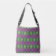 Un motif arlequin de vert et de violet se transforme en Jacquard ludique avec une superposition de silhouettes de diamants dorés et de fleur de lis, créant un motif amusant et coloré parfait pour toute célébration Mardi Gras influencée par la Nouvelle-Orléans. Ce sac est disponible en plusieurs tailles et à la fois les styles de sac sac fourre-tout et de sac de carrosserie.