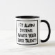 Drôle slogan sur une tasse qui dit "I Fit Alarm Systems. Quel est VOTRE super talent ?". Two Tone Mug pour un émetteur d'alarme ou un installateur du système de sécurité. Texte en gras noir et blanc.