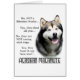 Une façon comique de dire aux gens que votre chien est un Malamute d'Alaska. Ce dessin de chien liste les réponses à certaines des questions les plus courantes que l'on vous pose toujours au sujet de votre race préférée de chien. Si vous souhaitez une autre race de chiens apparaissant dans cette conception, envoyez-nous un courriel à greywolfcreation@yahoo.com .