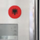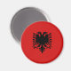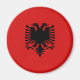 Le drapeau de l'Albanie a été soigneusement fixé à la forme circulaire de cet aimant. Une façon décorative de promouvoir la culture albanaise.