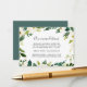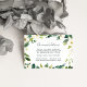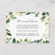 Faites glisser ces cartes chic et de petite taille dans vos invitations de mariage pour informer les clients de la ville de tout arrangement d'hôtel ou codes de groupe. Conçues pour être coordonnées avec notre collection de mariages Albâtre, les cartes sont dotées de lettrage noir avec une bordure botanique et florale dans des tons d'aquarelle vert et blanc.