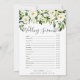 La carte de jeu chic pour la douche nuptiale est assortie à notre collection de douche nuptiale Alabaster Floral et présente des bordures de fleurs et de botaniques aquarelles en vert luxuriant et blanc crémeux. Carte double face vous permet d'obtenir deux jeux en un! Caractéristiques avant He Said, She Said et revient à un mot sur le thème du mariage scramble. Personnalisez avec la mariée le nom et la date de la douche. Les questions "He Said, She Said" sont entièrement personnalisables en utilisant les champs modèles de la page. Pour une personnalisation supplémentaire, n'hésitez pas à me contacter !