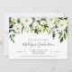 L'invitation à la fête de graduation florale chic comporte une bordure supérieure de roses d'ivoire et de pivoines blanches avec feuillage botanique luxuriant et verdure. Personnalisez avec les détails de votre fête de remise de diplômes en écriture manuscrite moderne et en lettres sans serif traditionnelles. Les invitations se retournent vers le riche bijou tonique vert jasper.