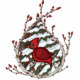 Alexandre le paisley cardinal est assis sur une branche couverte de baies rouges vifs au milieu de sa maison de forêt enneigée. Ses plumes cramoisi se détachent contre la neige couverte à feuillage persistant derrière lui, créant une scène parfaite pour Noël ou toute autre fête d'hiver.