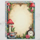 Parcourez le trou du lapin avec ce papier délicieux qui présente une scène vintage d'Alice au pays des merveilles. Il présente une charmante bordure de champignons de tabouret, de délicats roses, une tasse de thé et une montre de poche, le tout dans un beau cadre décoratif. Avec des possibilités créatives illimitées, cet article est parfait pour les invitations, scrapbooking, junk journaling et autres projets personnalisés. Imprimé en couleur haute qualité sur papier mat fin, il est conçu pour apporter un look professionnel et net à vos envois personnels ou professionnels. Ajoutez des photos personnelles et du texte sans supplément, ce qui en fait un ajout polyvalent et mémorable à tout projet.