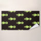 Magnifique serviette de science-fiction en noir avec imprimé alien vert.