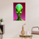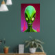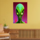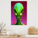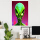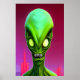 Portrait d'un alien vert avec une grande tête et des yeux verts. C'est un art généré par l'IA.