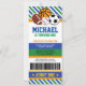 Venez Vous Amuser ! Célébrez votre anniversaire avec notre All Star Sport Party Invitation. Le design comprend du basket, du baseball, du rugby, du football américain et des balles de football sur des bandes bleues foncées, orange et vertes sous la forme de billets d'entrée avec admettre un texte sur le fond. Cette invitation à billets sport allstar est parfaite pour votre fête sportive d'anniversaire, fête sportive de premier anniversaire ou invitation à billets d'événements sportifs.