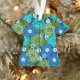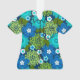Terre marine avec bleu océanique, turquoise, aqua, blanc, olive et vert citron. Les fleurs tropicales et les feuilles ont été dessinés dans un style graphique rétro qui était populaire dans les années 40 sur les menus des bateaux à vapeur hawaïens. Ce design se décline en plusieurs couleurs.