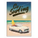 Affiche de voyage Go Surfing, dessin animé sur le surf de plage de vacances imprimé.