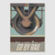 Go By Tram, affiche de voyage de dessin animé vintage avec un ancien tramway vintage.