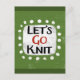 "Let's Go Knit" est un design de texte mignon avec une forme d'accent blanc entourée de points blancs texturés.