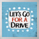 "Let's Go For A Drive" est un design de texte mignon en bleu clair avec du texte en noir et rouge, avec une forme d'accent blanc et des points blancs texturés blancs qui l'entourent.