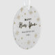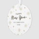 Les caractéristiques de conception ce d'amusement un noir, un or et un modèle de couleurs blanc, avec des feux d'artifice et des graphiques d'étoile et une main ont marqué avec des lettres la police qui lit la "bonne année". Ajoutez votre photographie au postérieur de l'ornement pour un contact personnalisé.