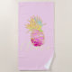 NewParkLane - Fun, Tropical Beach Towel, avec un ananas hawaïen aux aquarelles colorées et audacieuses et à la parties scintillant faux or, et 'Aloha' écrit dans une élégante typographie de script.
