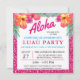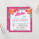 Il présente une "Aloha" tropicale lumineuse, des fleurs d'hibiscus colorées et une bordure en faux parties scintillant rose chaud. Fournitures de fête et invitations disponibles dans mon magasin. Design©Rosalind Moore, Cherry Lane Designs.
