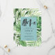 Invitations de fête d'anniversaire moderne en feuille de palme tropicale. Texte du script d'effet peint à la main. Partie d'une collection d'été sur tendance. La couleur Arrière - plan peut être modifiée.