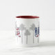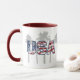 Un imprimé vintage hawaïen de chemise aloha en combinaison avec un drapeau américain pour créer ce graphique encadré de palmiers. Customisez ce design sur votre tasse préférée.