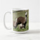 Les jeunes alpaga énergiques fonctionnent complètement autour de cette tasse.