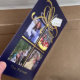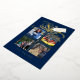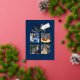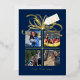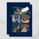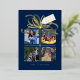 Carte de vœux photo bleu marine pour aider à accueillir la nouvelle année et rester en contact avec la famille et les amis. Un cadeau avec 4 photos sur la couverture et un ruban en feuille d'or véritable, un nœud et une étiquette avec l'année.