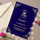 Une invitation à dîner Iftar avec une illustration de kettle islamique en feuille d'or de luxe pour iftar. La carte est facile à personnaliser avec votre libellé, vos options de forme de papier et votre choix de types de papier. Les lanternes bleu foncé et or ont l'air époustouflantes sur le devant tandis que le verso rend cette invitation à la fête de l'iftar vraiment unique.
