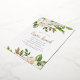 Cartons d'invitation pour déjeuner de Pâques personnalisés et abordables avec une bordure florale peinte élégante avec des accents de feuilles dorées, blanches et vertes. Personnalisez le modèle avec les détails de votre événement ou utilisez les outils de conception pour personnaliser le texte, choisir les couleurs de fond et modifier les polices pour créer votre propre modèle d'invitation de fête de Pâques unique. Le verso présente un joli fond vert sauge ou utilisez l'espace pour ajouter du texte supplémentaire ou des photos si nécessaire. Ce beau design floral neutre est parfait pour le printemps.