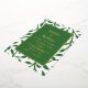 Cette invitation élégante avec feuilles en feuille d'or est chic, fraîche et parfaite pour les événements de printemps, d'été et d'automne. Le schéma de couleurs vert herbe naturel et blanc est personnalisable, ce qui vous permet de parfaitement assortir votre thème de couleur choisi.