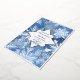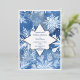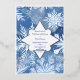 Invitation de mariage sur le thème des flocons de neige hivernaux avec des embellissements en feuille d'argent sur la bordure, les flocons de neige et les noms des conjoints.