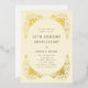 Une invitation d'anniversaire de mariage belle et formelle avec des éléments en feuille d'or. Parfaite pour une fête classique avec une touche moderne et art déco. Les détails en feuille d'or créent une floraison de fleurs et de feuillage dans un style vintage.