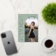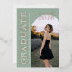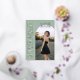 Cette annonce de remise de diplôme photo vert sauge associe une typographie serif classique à une mise en page moderne et épurée pour un rendu raffiné et éditorial. La lettre en ivoire doux et les accents de feuille d'or rose mettent en valeur le nom du diplômé, l'année de promotion et l'école, tandis que le design garde l'accent sur la photo principale. Entièrement personnalisable, ce modèle vous permet de personnaliser tous les détails du texte et de télécharger votre propre image sur le devant. Le verso coordonné présente un fond vert sauge assorti avec un espace pour un collage de quatre photos, idéal pour partager d'autres portraits de fin d'année. Une annonce de remise de diplôme intemporelle mais contemporaine conçue pour ceux qui aiment les tons neutres, le design élégant et le luxe discret. © Kimbellished, LLC