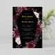 Célébrez la future mariée avec une douche de mariage élégamment sinistre, adaptée à quelqu'un qui aime Halloween ou qui a un style gothique sombre et mélancolique. Ce design présente un cadre de cercueil avec des chauves-souris à l'aquarelle et des roses rouges profondes.