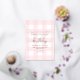 Cette invitation présente un design en vichy classique avec de véritables détails en feuille d'or. L'en-tête de script est une image qui ne peut pas être modifiée. Tous les autres textes sont entièrement modifiables. Pour une personnalisation plus avancée de cette conception, il suffit de cliquer sur le bouton "Customiser" ci-dessus.