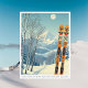 Bonjour des montagnes enneigées de Alyeska Resort, Alaska, USA! Nous espérons que vous passerez de merveilleuses vacances à ski. Cette carte postale présente un magnifique paysage montagneux bleu-gris avec des planches de ski rétro dans un motif tribal orange. Toutes les phrases de texte peuvent être customisées pour vous convenir!