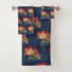 Cette élégante serviette de bain joliment décorée d'amaryllis variés, en fleurs, sur un bel arrière - plan bleu marine recouvert de pois égayera sûrement la salle de bain la plus sombre.