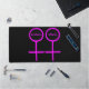 Ce somptueux tapis de bureau est conçu pour les lesbiennes. Il comporte deux symboles féminins roses côte à côte. L'arrière - plan est noir et il y a du texte rose personnalisable à l'intérieur de chacun des symboles pour mettre des noms.