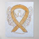 L'affiche de l'art de l'ange gardien présente l'art d'une peinture d'ange ruban de conscience ambrée. Annexe le cancer utilise le ruban de sensibilisation à l'ambre pour sa cause. Les affiches d'art orangé de la conscience ambrée peuvent être customisées de messages personnalisés pour créer des images ou des images de grande cause pour des collecteurs de fonds, des cadeaux de sensibilisation, ou d'autres événements ou occasions spéciales.