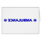 Ambulance (vers l'arrière, juste comme sur l'avant de la chose vraie) flanquée de l'étoile de la vie