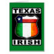 Les Irlandais du Texas conçoivent, dans le style d'un signe américain frais d'itinéraire de route. L'Irlandais du Texas des textes est le long du dessus et du bas, avec le drapeau de l'état du Texas et le drapeau de la république d'Irlande à l'intérieur du signe d'itinéraire. Grand pour des Texans de descente irlandaise, et pour des ex-tapotements dans l'état solitaire d'étoile.