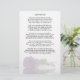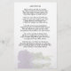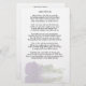 Cette insertion est conçue comme un complément pour notre programme plié correspondant. Utilisez-le pour les prières, les hymnes ou toute information supplémentaire dont vos invités pourraient avoir besoin. Il présente un design simple mais joli avec un seul rose améthyste à long tiges violet sur son côté réfléchissant dans un bassin d'eau avec des vagues et des ondulations. La photo est présentée comme un filigrane pâle, donc si le texte s'étend sur elle vous pouvez toujours la lire. Belle façon d'ajouter plus de fonctionnalités à vos programmes de mariage.