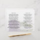 Ce bel encart est conçu pour coordonner avec notre programme plié correspondant. Il y a beaucoup de place pour les hymnes, les prières ou toute autre information dont vos invités pourraient avoir besoin. L'oeuvre présente un joli rose améthyste violet comme filigrane, de sorte que le texte peut s'étendre sur l'image. Excellente façon d'étendre vos programmes de mariage! REMARQUE : Cette insertion est expédiée sous forme de feuille plate et devra être pliée. Il y a un choix de papiers et nous suggérons d'éviter le semi-brillant car il s'agit d'un mince stock de carton qui est difficile à plier à la main.
