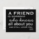 Carte postale inspirante avec les mots d'Elbert Hubbard "Un ami est quelqu'un qui connaît tout sur vous et qui vous aime encore. De GotDonna et Donna Gotlib Designs. Imprimé par les gens fins à Zazzle.