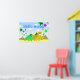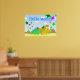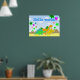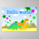 Amis Dinosaur Bonjour Poster Mondial. Trois mignons petits dinosaures : Stegosaurus vert, Diplodocus orange et Tricératops jaunes lors d'une journée heureuse dans un paysage pré-historique d'âge de pierre avec des arbres, des montagnes et des vulcanes aux étoiles colorées et un beau ciel bleu avec des nuages blancs poster avec le texte : "Bonjour le monde!", changer/ customiser/ changer le texte dans tout texte que vous aimez. Cette belle affiche colorée est entièrement personnalisable, ajoutez votre texte et vos images ! Une belle affiche de dinosaure de dessin animé en couleur pour les petits fans de dino !