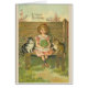 Une image de carte d'anniversaire de cru comporte une petite fille douce s'asseyant sur un banc, tenant un bouquet, alors qu'un chat se repose de chaque côté de elle. L'avant de la carte indique que "un joyeux anniversaire" et l'intérieur de message est : "C'est toujours un festin pour souhaiter un joyeux anniversaire à quelqu'un si doux."